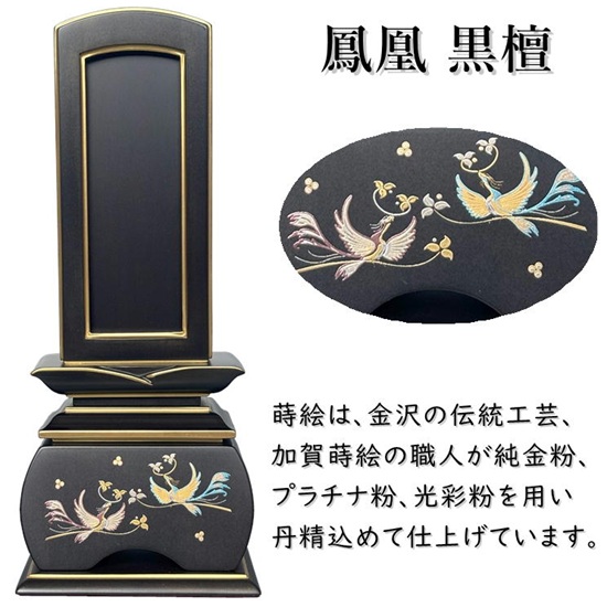 新世紀位牌 優雅 回出 3.5寸【鳳凰 蒔絵 黒檀】